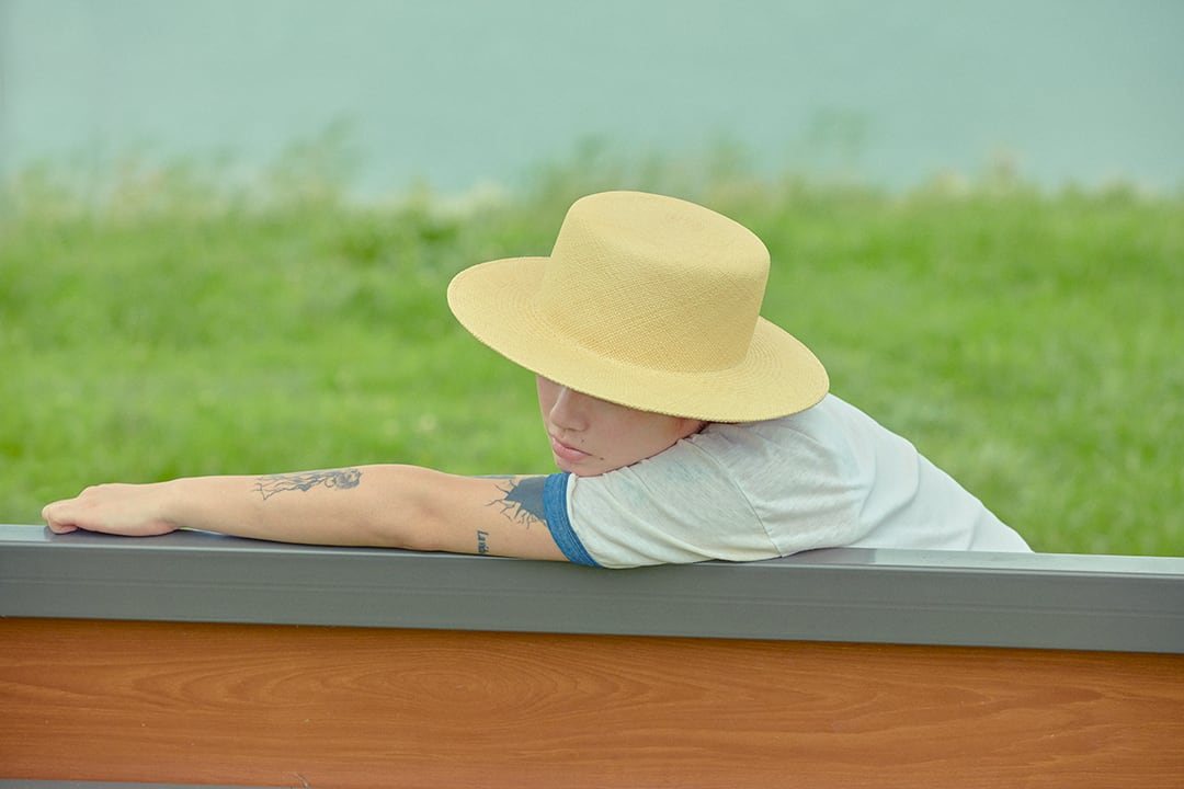 To solve this, we crafted two hats from different materials and combined them in an original docking construction. The exterior is made of Panama, while the interior incorporates nantokusō, a rigid material that restores the firmness essential to the boater’s silhouette.